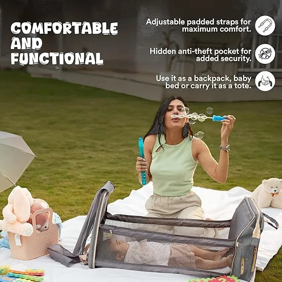 🛏️ Foldable Changing Station: Instant pop-up baby bed and changing area with breathable mesh sides for safety.